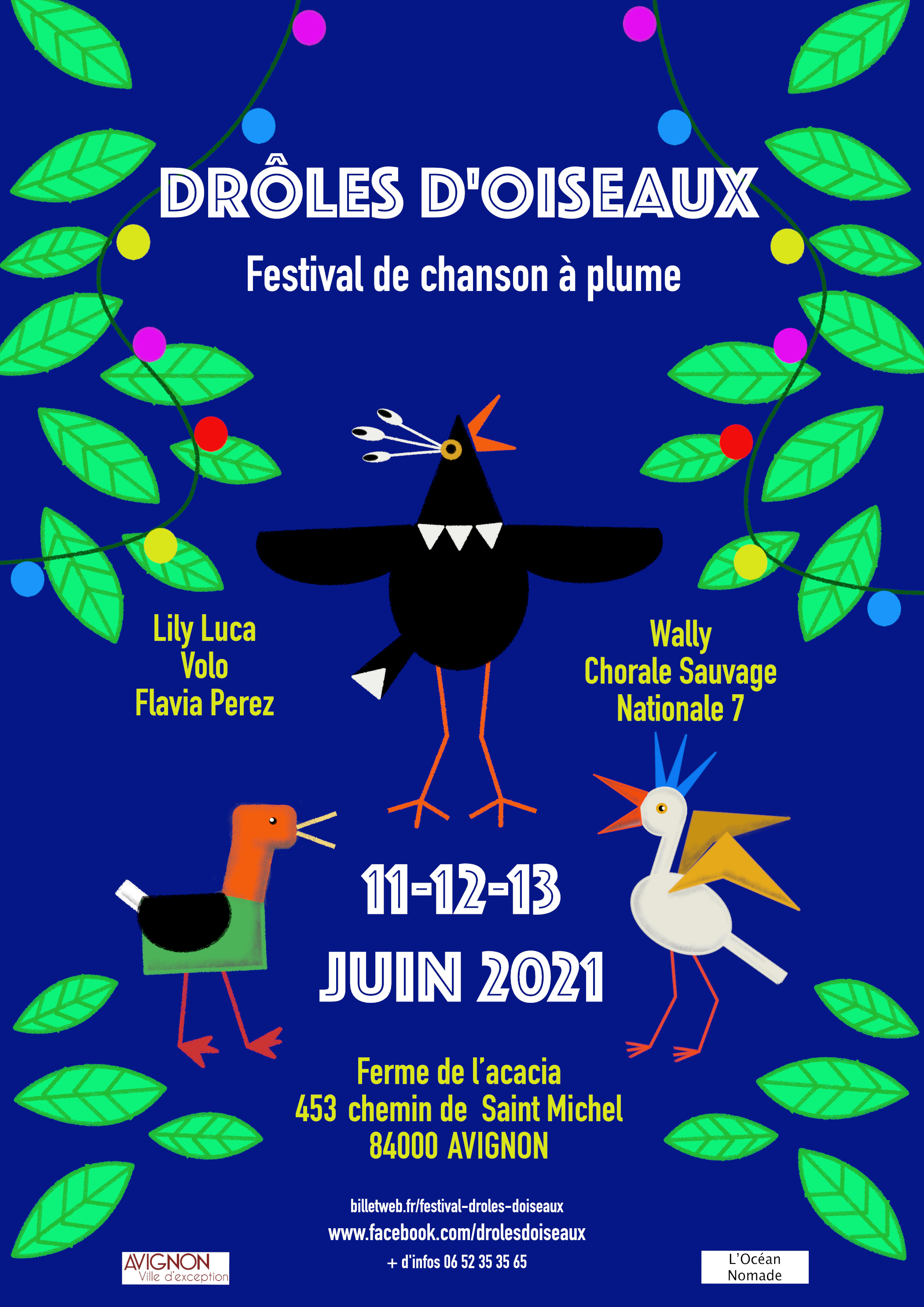 Il n’y a pas que des mauvaises nouvelles pour la chanson d’expression francophone ! On vous annonce la naissance de « Drôles d’oiseaux, festival de chanson à plume » ! Cette première édition se tiendra à Avignon les 11, 12 et 13 juin 2021, dans la brousse de la ceinture verte. Nous accueillerons des artistes qui disent et chantent à leurs façons un peu du monde sensible que nous aimerions construire. Des artistes qui n’ont pas attendu cette période questionnante pour se poser des questions et pour nourrir nos imaginaires.